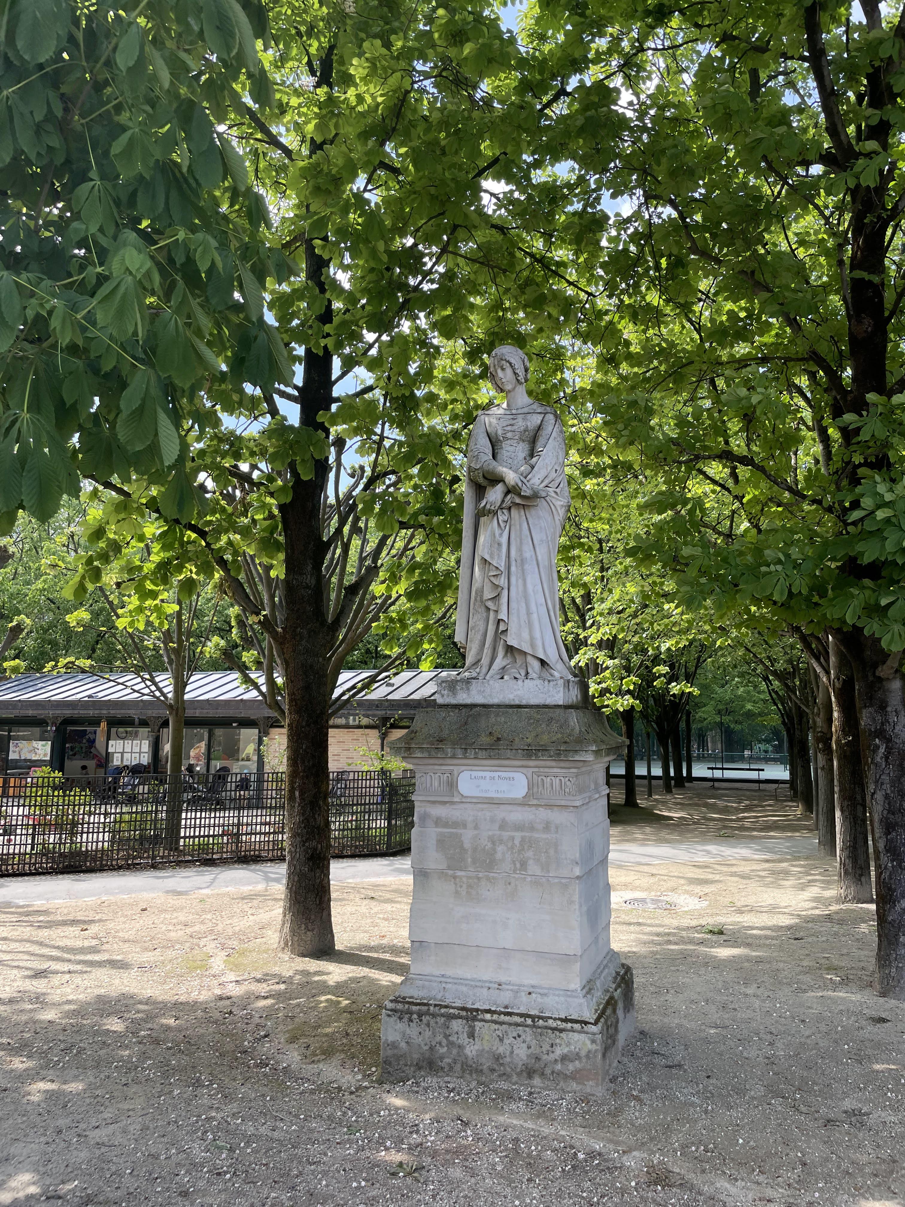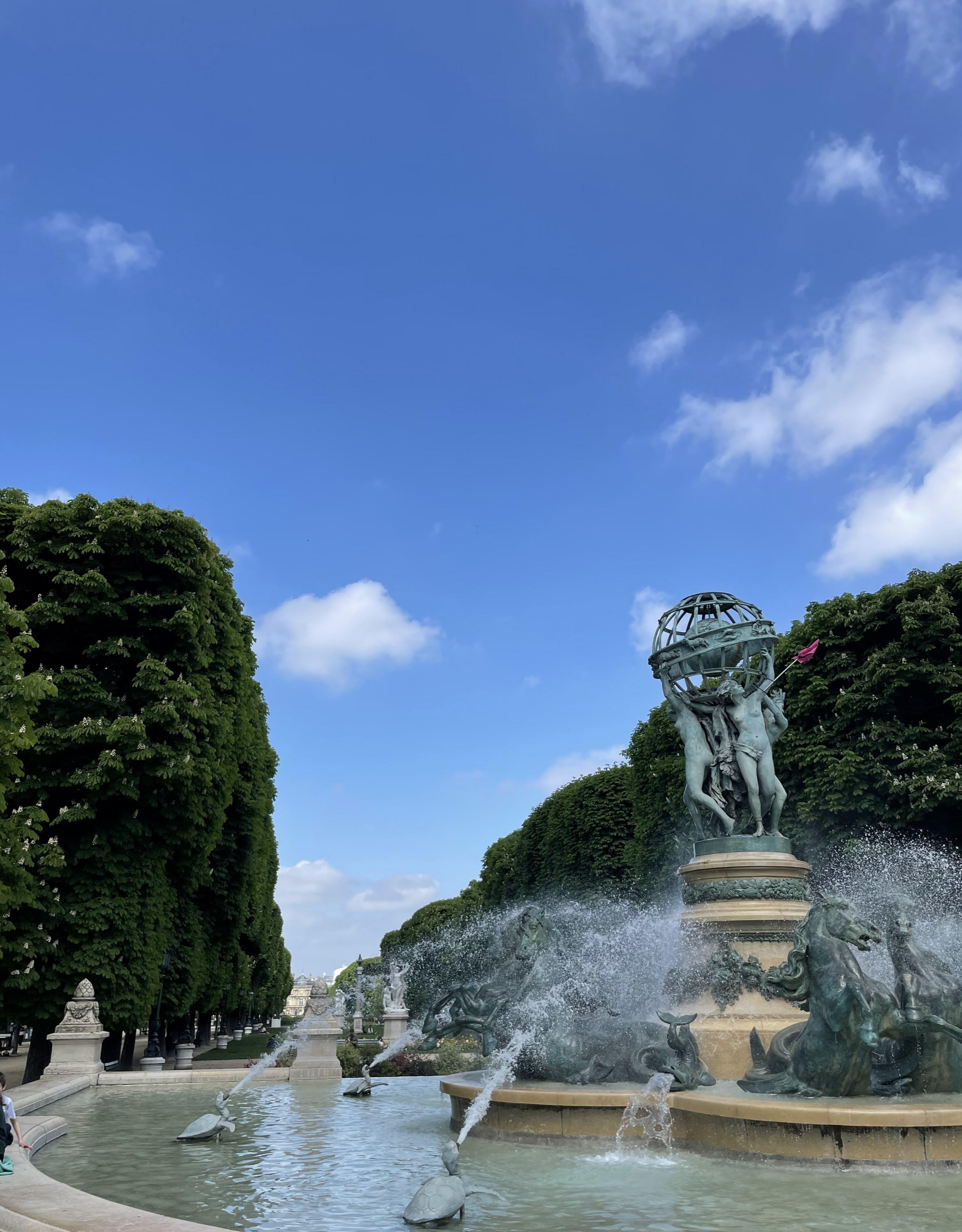 어제는 공원의 남쪽에서 북동쪽으로 이동했었다. 위대한 탐험가들의 정원(Jardin des Grands-Explorateurs Marco-Polo et Cavelier-de-la-Salle)을 지났다. 장 밥티스트 카르포의 세계의 네 부분(Les quatre parties du monde) 동상(1867-1874)에는 노동절 집회의 흔적인듯한 깃발이 걸려있었다. 오르세 미술관의 정보에 의하면 이 동상은 조각가가 죽기 1년 전에야 설치되었다고 한다. 지구와 별자리 형상은 장 밥티스트 카르포의 제자인 외젠 르그랭(Eugène Legrain)이, 말, 거북이, 돌고래는 에마뉘엘 프레미에(Emmanuel Frémiet)가 만들었다고 한다. 1