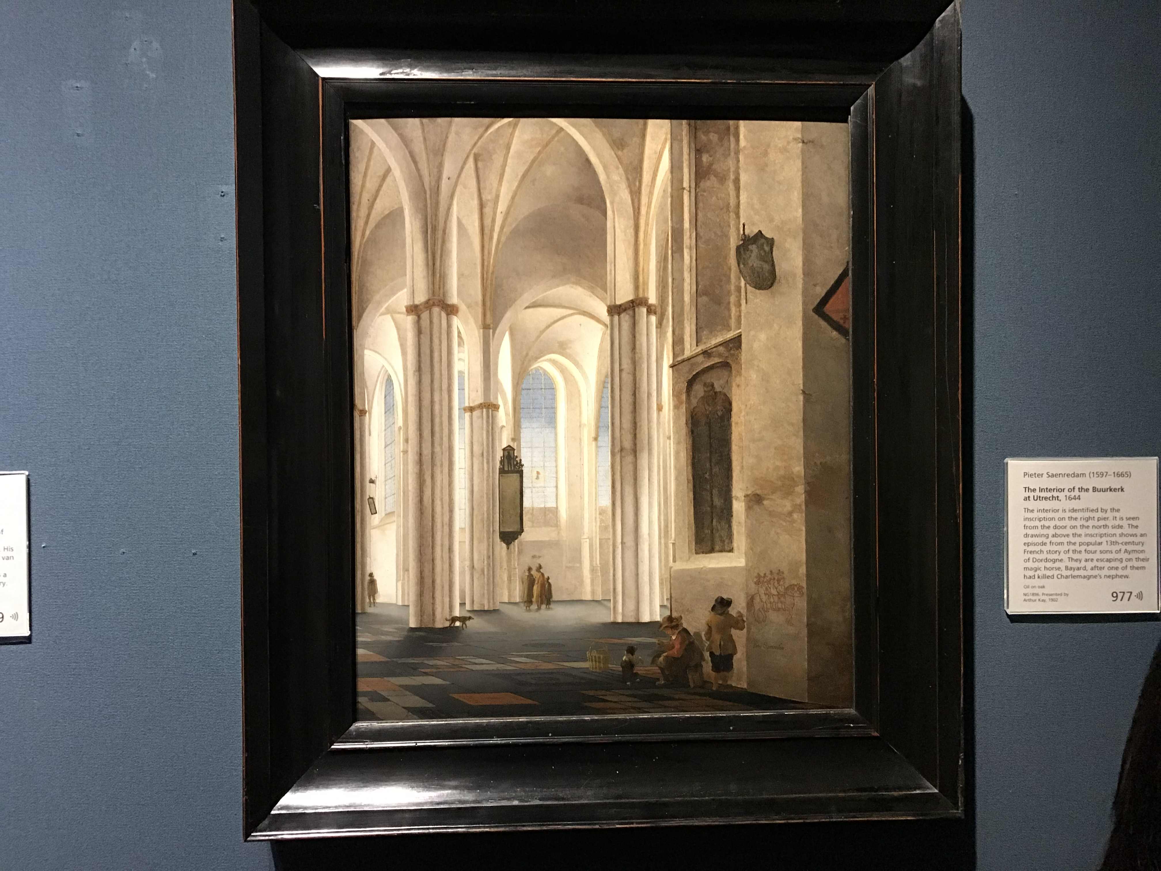 벽의 그림과 상체를 일으키고 있는 멍멍이이가 궁금해서 오래들여다봤었다. 내셔널 갤러리 설명 참고: https://www.nationalgallery.org.uk/paintings/pieter-saenredam-the-interior-of-the-buurkerk-at-utrecht