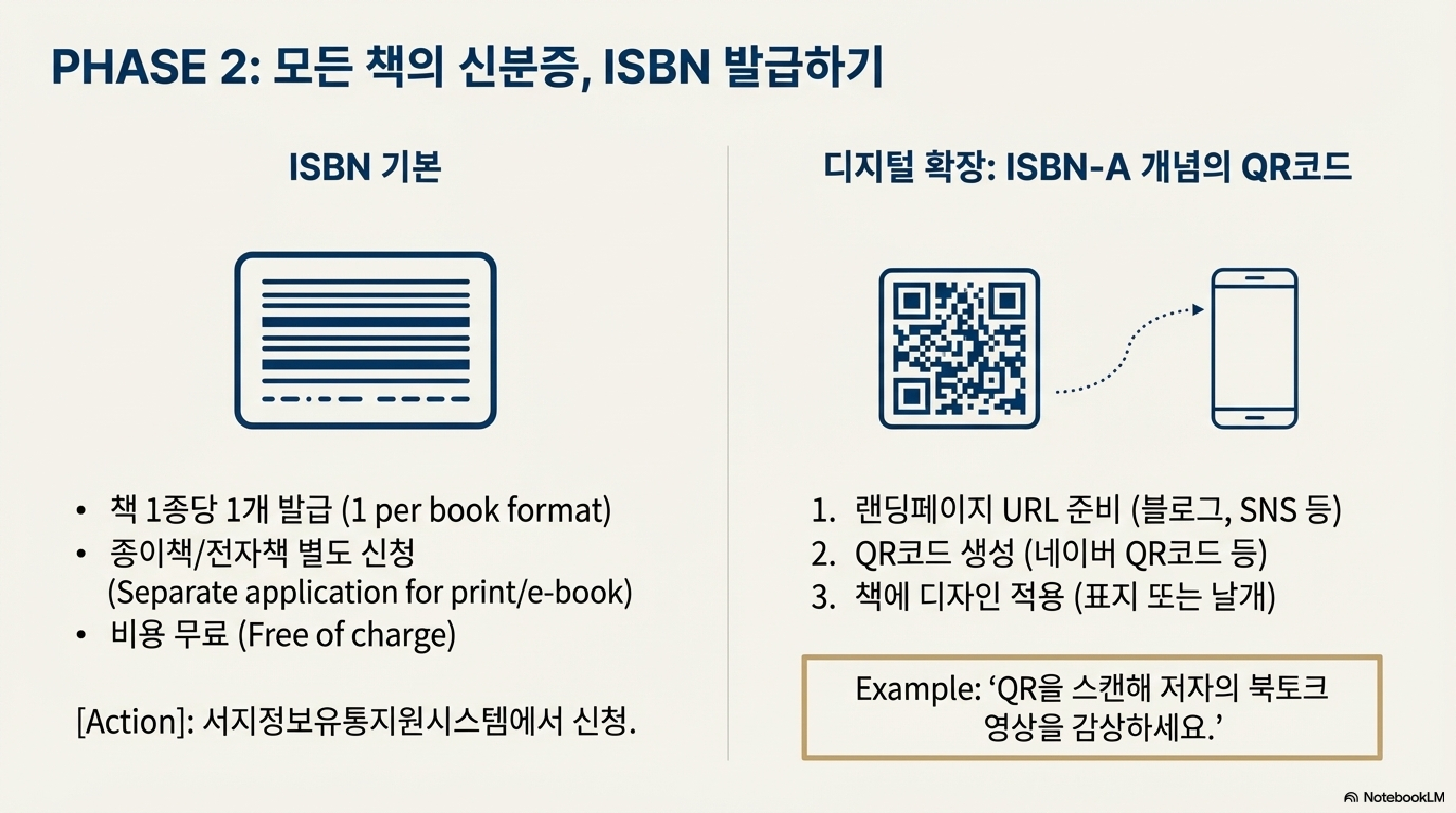 - [마케팅]: 책 뒷면 ISBN 옆에 **'QR 코드(ISBN-A 개념)'**를 박아 독자와 소통 창구 만들기.