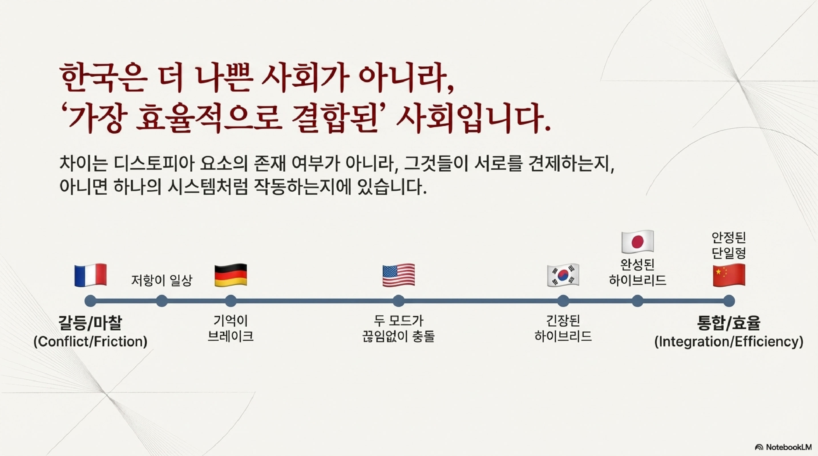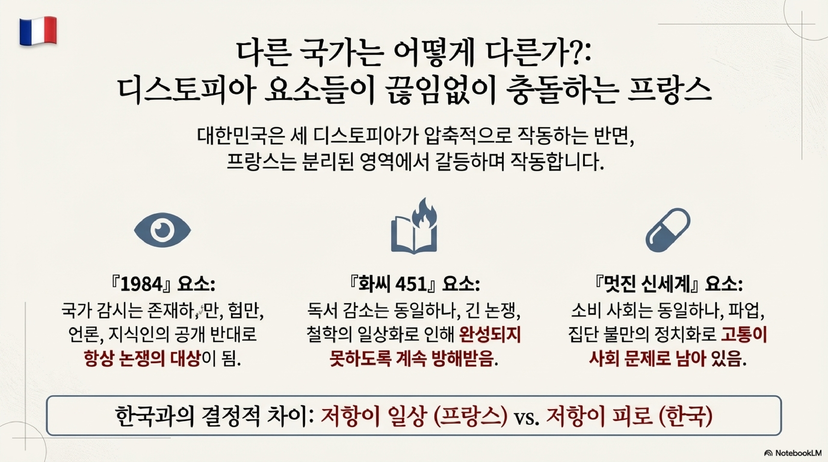 나 : 대한민국이 정말 특별히 하이브리드 디스토피아인가? 프랑스의 경우를 보면 어떻지?1