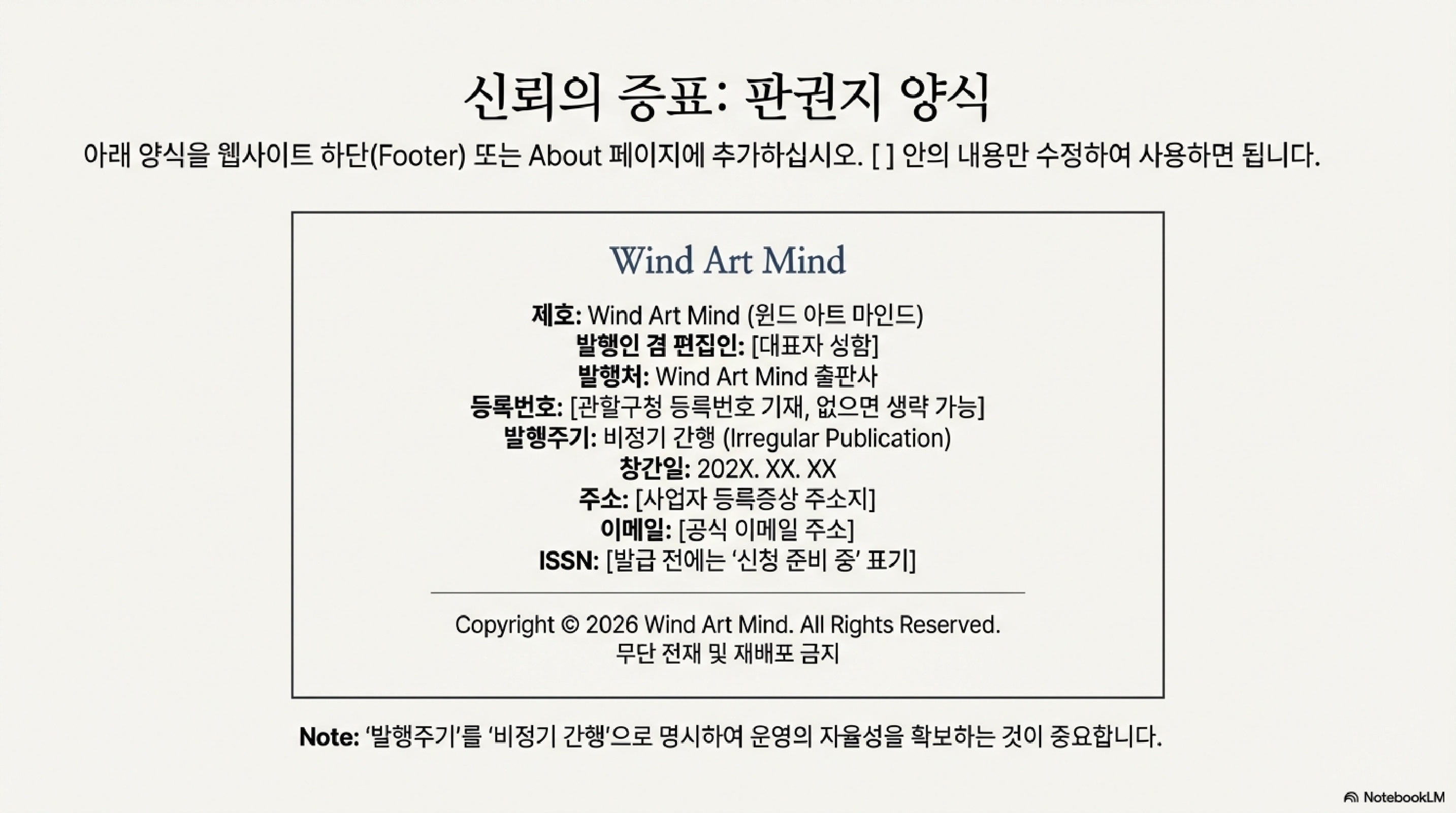 ◦ 발행 주체 명시 (예: Wind Art Mind 편집부)
