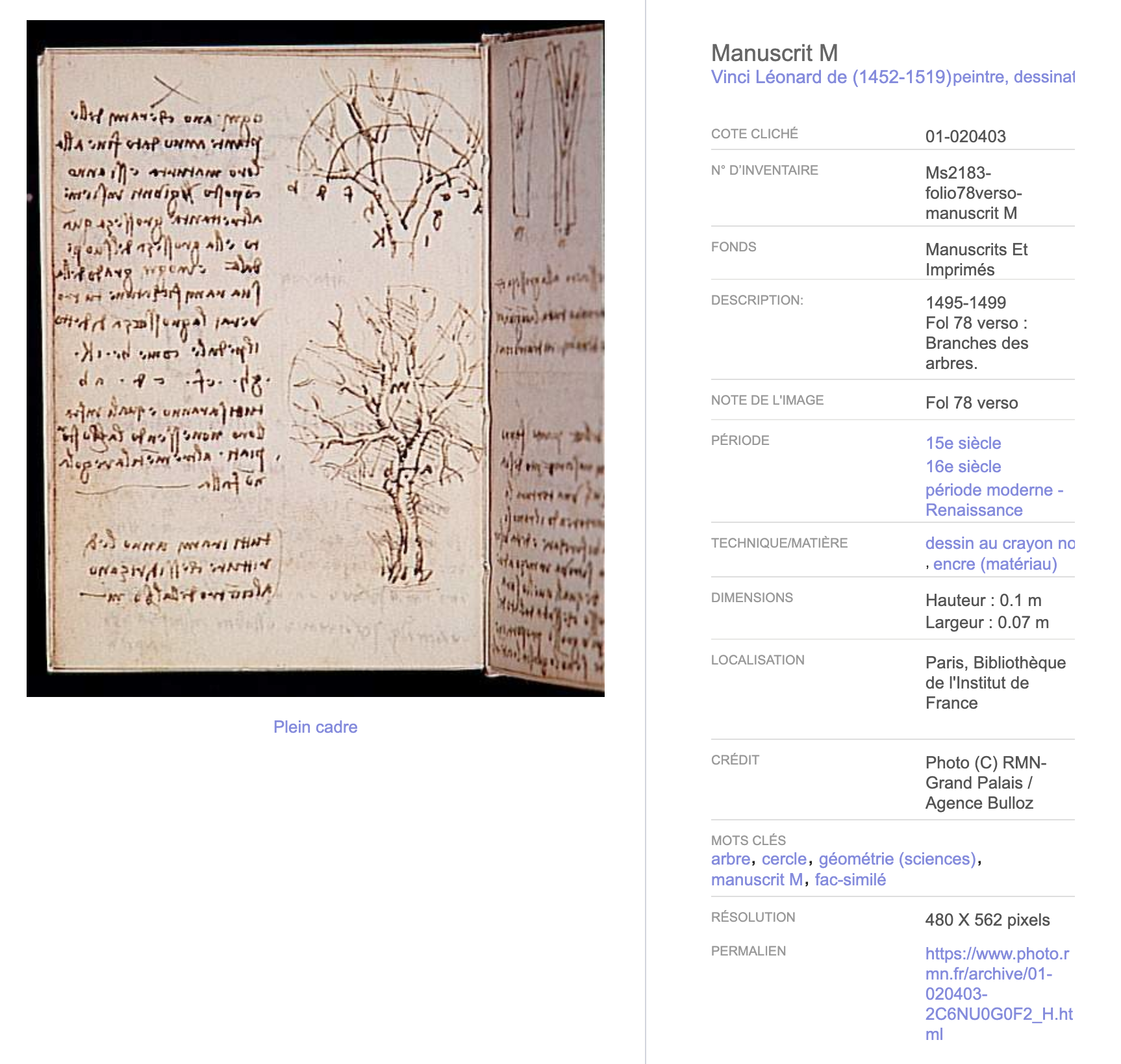 01-020664 Vinci Léonard de (1452-1519) Paris, Bibliothèque de l'Institut de France