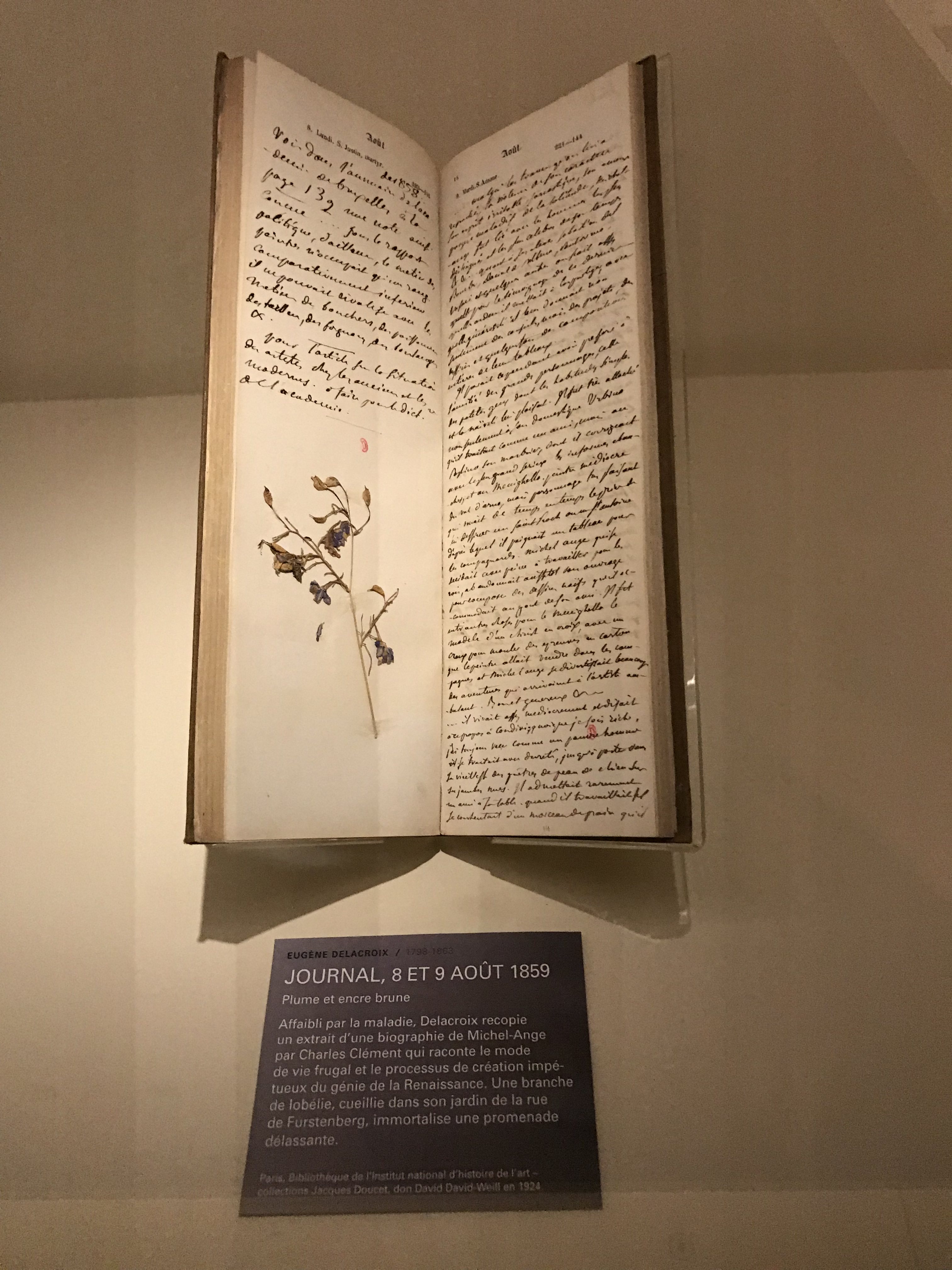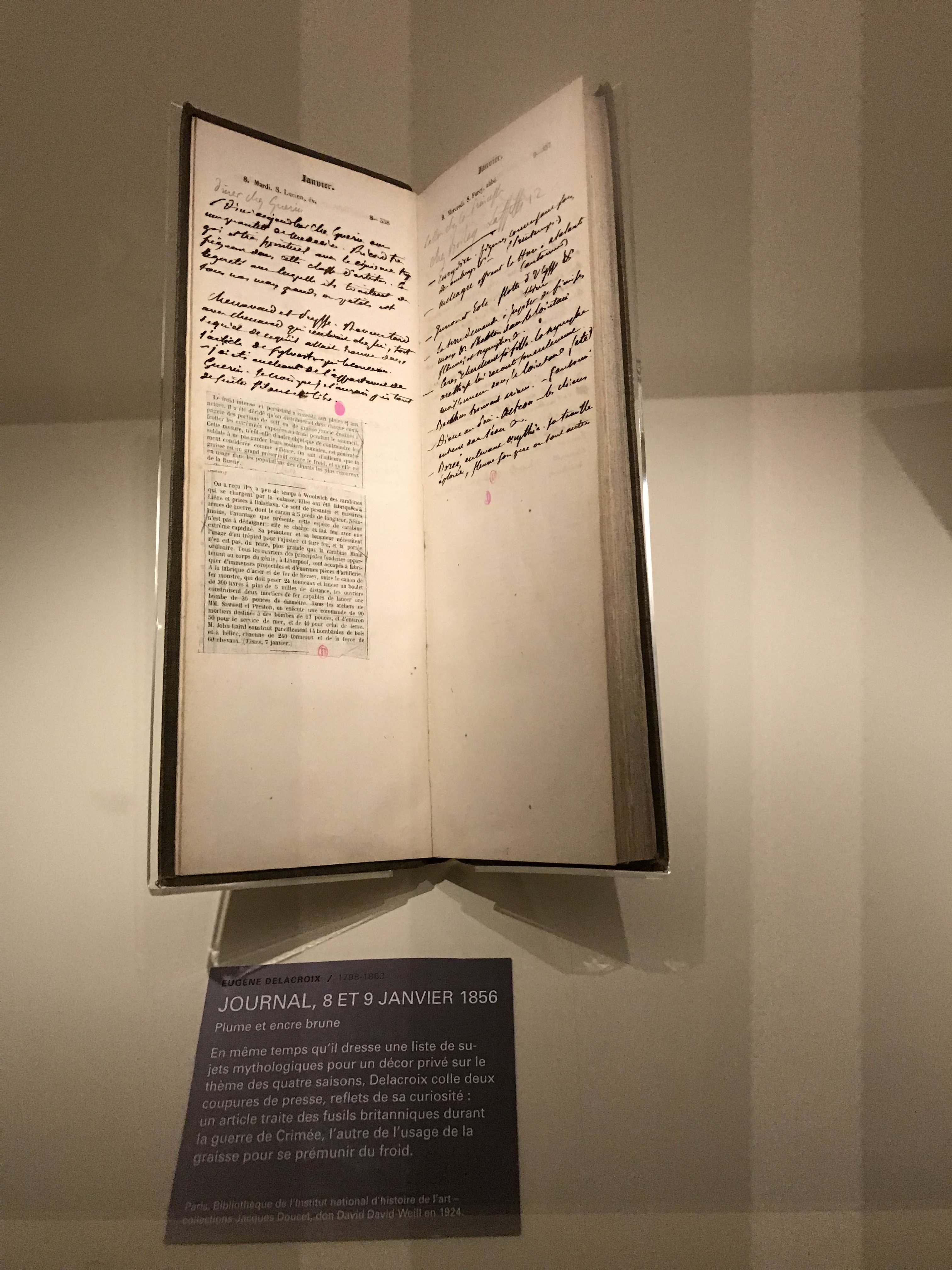 셰익스피어의 햄릿도 그렇고, 괴테의 파우스트는 한국에서 집 정리할 때도 마지막까지 놔두었을만큼 좋아하던 책. 들라크루아의 판화들을 보니, 전시장에서 책을 다시 읽은 기분. 이전에 인쇄물로 봤을 때도 좋았고, 전시장에서 보았을 때는 더 좋았고, 집에서 사진으로 다시 보아도 재미있다. 깨알같은 글씨들이 담긴 수첩을 보는것도 좋다. 들라크루아의 일기에도 흥미로운 내용이 많이 담겨있다.